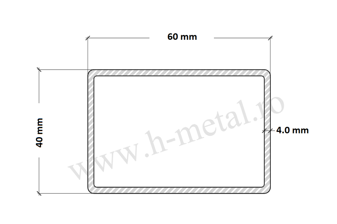 H Metal furnizeaza teava rectangulara otel 60x40x4 mm.