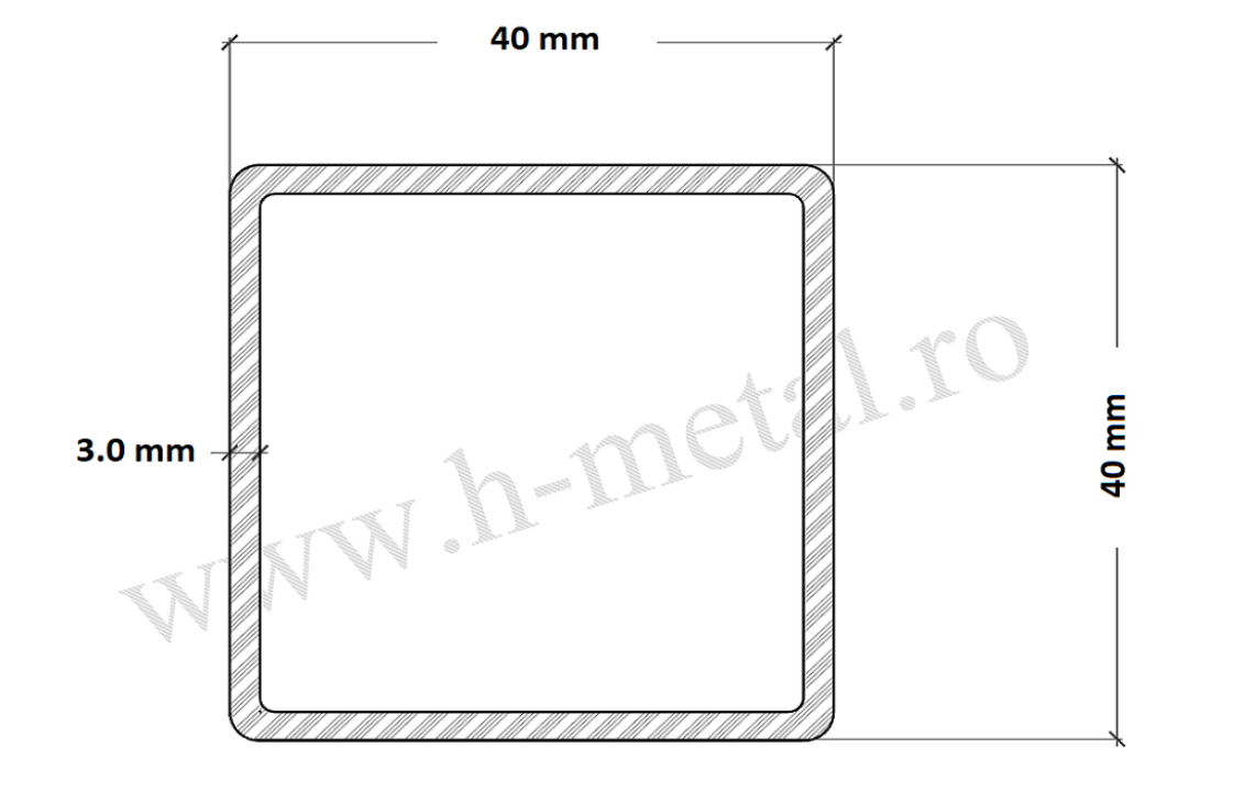 H Metal furnizeaza teava patrata zincata 40x40x3 mm.